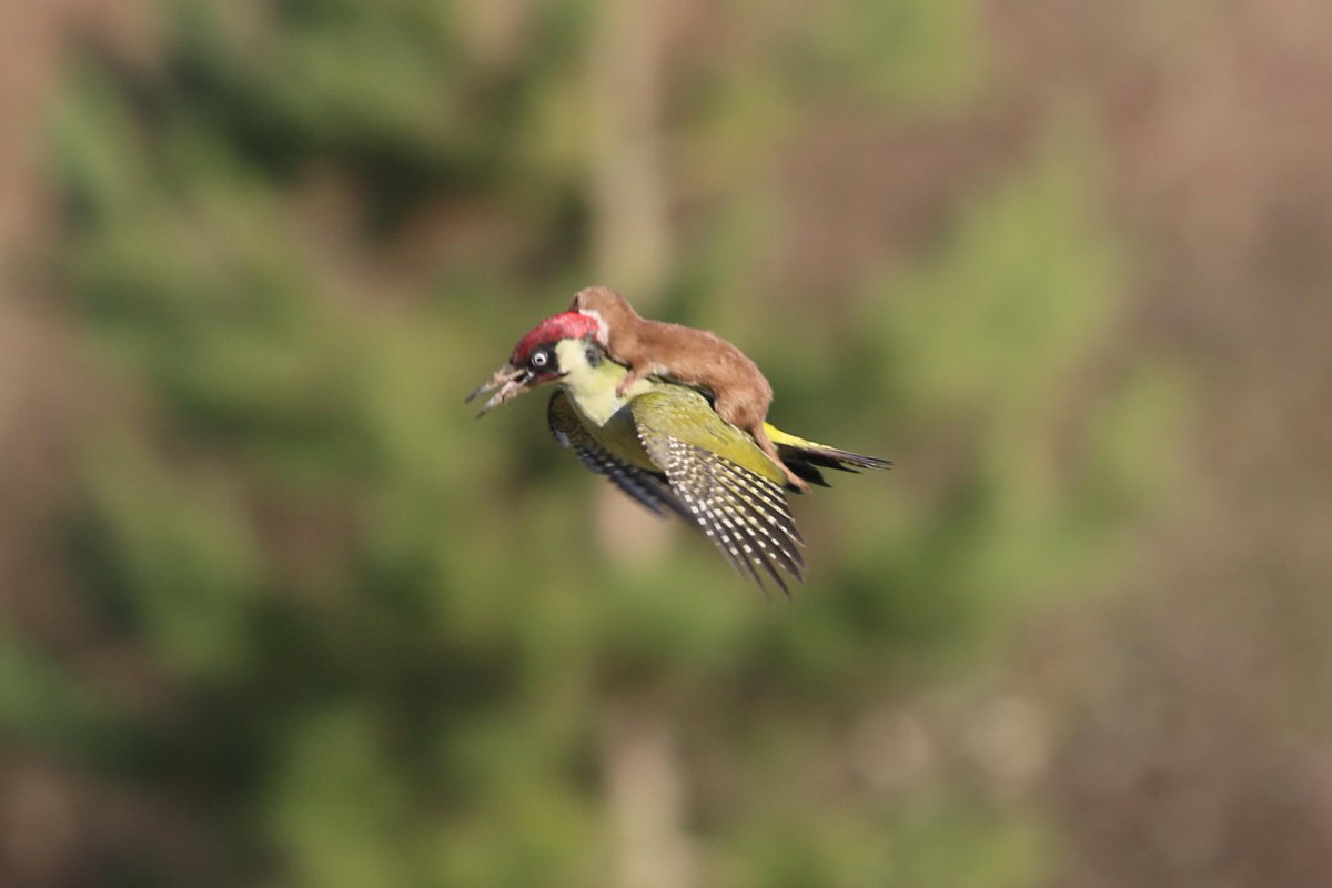 So, this guy captured a photo of a baby weasel trying to take down a woodpecker, and they went airborne. A real David and Goliath story. Hell yeah, go tiny weasel. There's a life lesson in there somewhere. Something like, "Grab hold of the biggest pecker you can find, and ride it for dear life." You know, valuable shit.